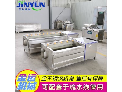 另外加装毛刷,能有效去除物品中的毛发。高压水流使物料呈翻滚状态,去除产品表面农残功效,洗菜机里漂浮物可以从溢流槽溢出,沉淀物从口排出,以达到清洗的目的。